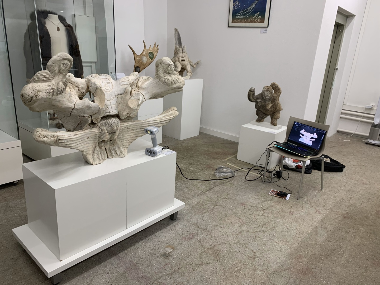 In-situ 3D scanning of « Shaman with familiars » (2009) Original Whalebone carving by Manasie Maniapik, Pangnirtung, Nunavut, Canada Museum Cerny, Bern, Suisse, Inv. No. 2009.07 © Manasie Maniapik, at the Museum Cerny (Bern, Switzerland), Contemporary Circumpolar Art (www.museumcerny.ch).