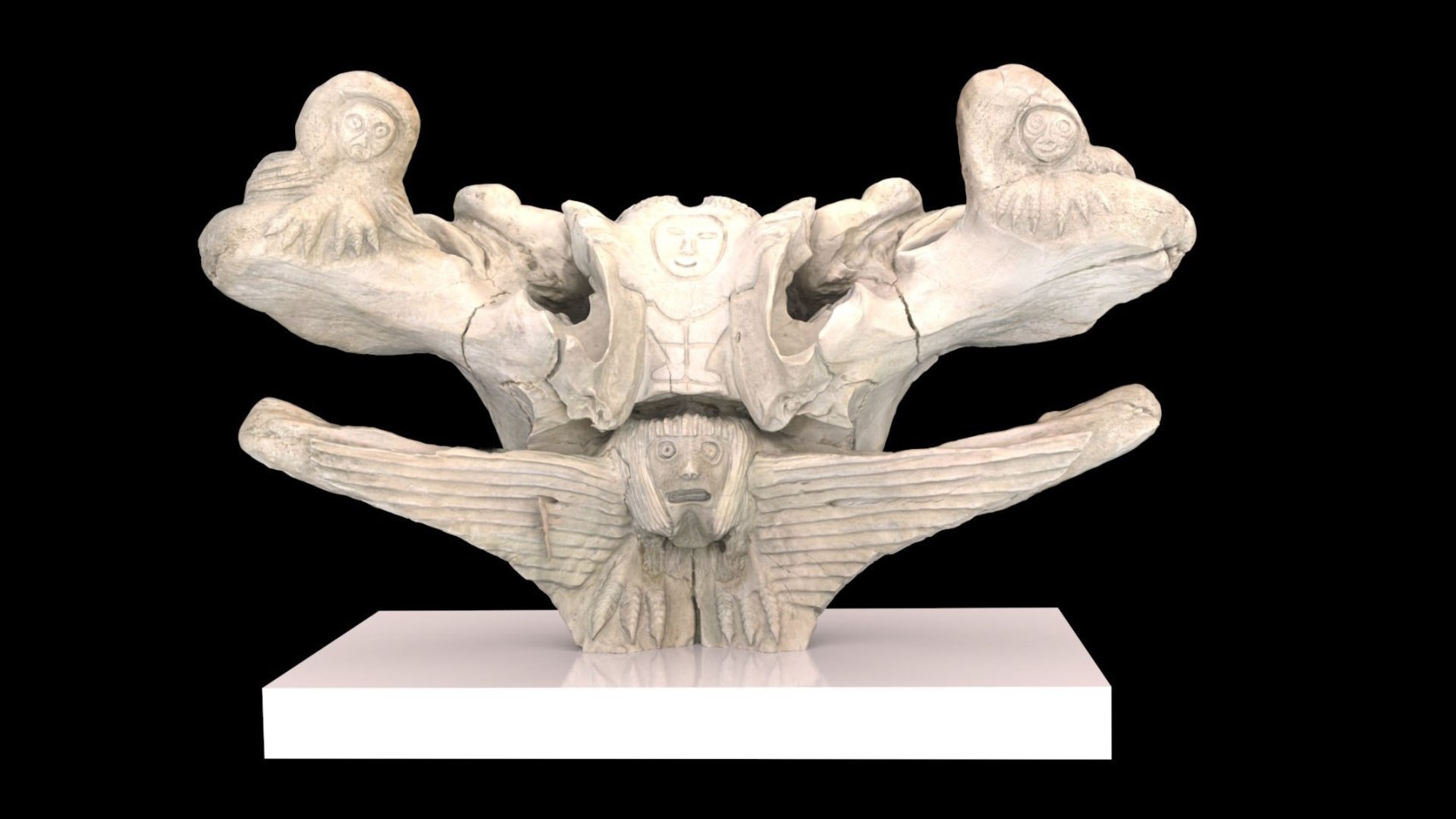 3D scan rendering with Autodesk 3DS MAX of the « « Shaman with familiars » whale bone carving, Manasie Maniapik, Pangnirtung, Nunavut, Canada Museum Cerny, Bern, Suisse, Inv.No. 2009.07 ©.